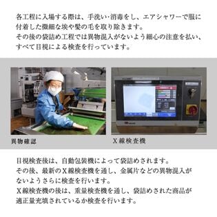 商品のパッケージはアルミの防湿。またチャック付きの袋なので、しっかりと鮮度を保持します。脱酸素剤を封入し、フレッシュな状態でお届けします。