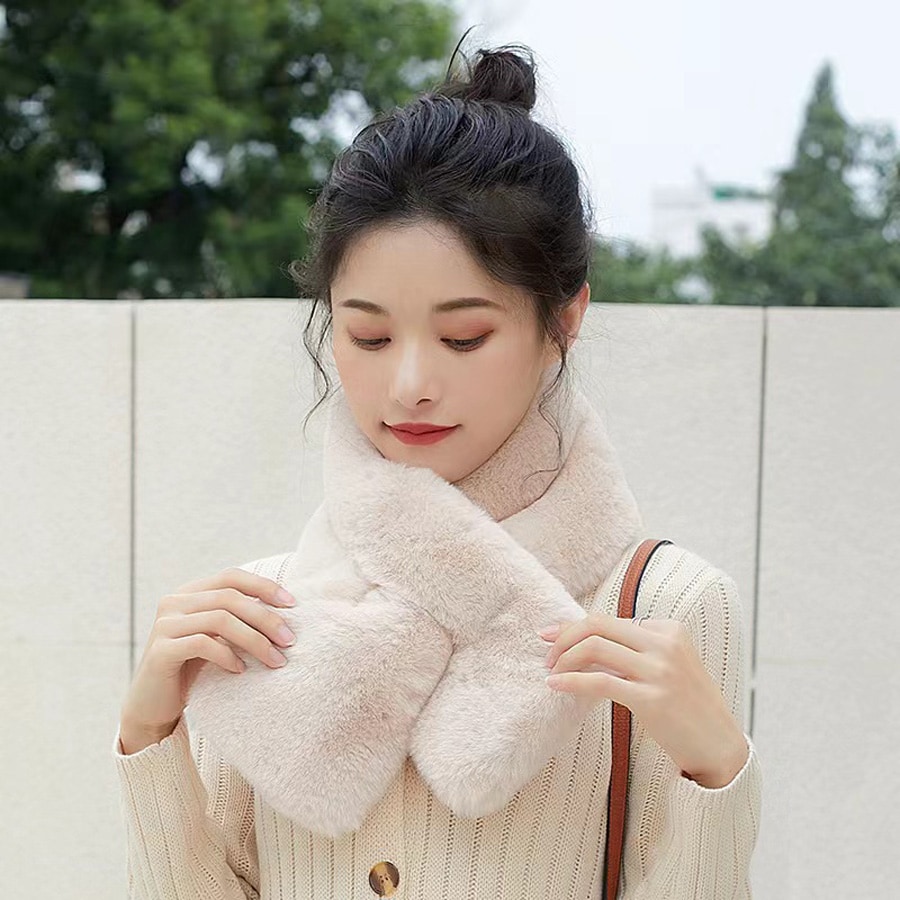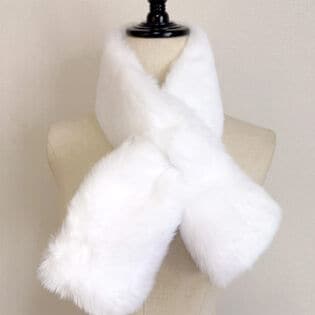- 【ホワイト】ふわふわマフラー ティペット 差し込みタイプ