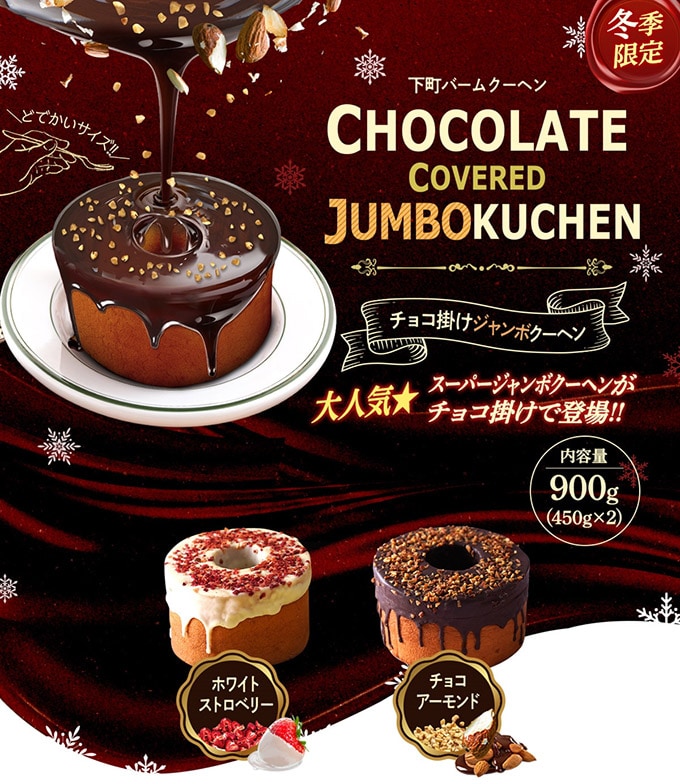 【450g×2種】チョコがけスーパージャンボクーヘン チョコアーモンド ホワイトストロベリー | 超ド級1個450g!チョコがけスーパージャンボ バウムクーヘン 2種2個セット