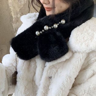 - 【A02/ブラック】ふわふわフェイクファーティペット