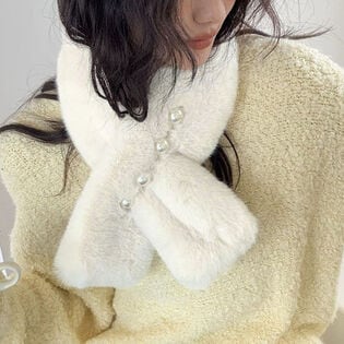 - 【A02/ホワイト】ふわふわフェイクファーティペット