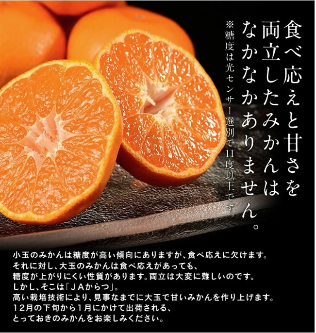 うーん…美味しく無い!予約迄して購入したのに、大きいだけで皮はブカブカ!中の薄皮も硬く乾燥したみかんのようでした。楽しみにしていたのに、残念!此方に佐賀のみかん試食販売で来ていますが、買う気にならない。