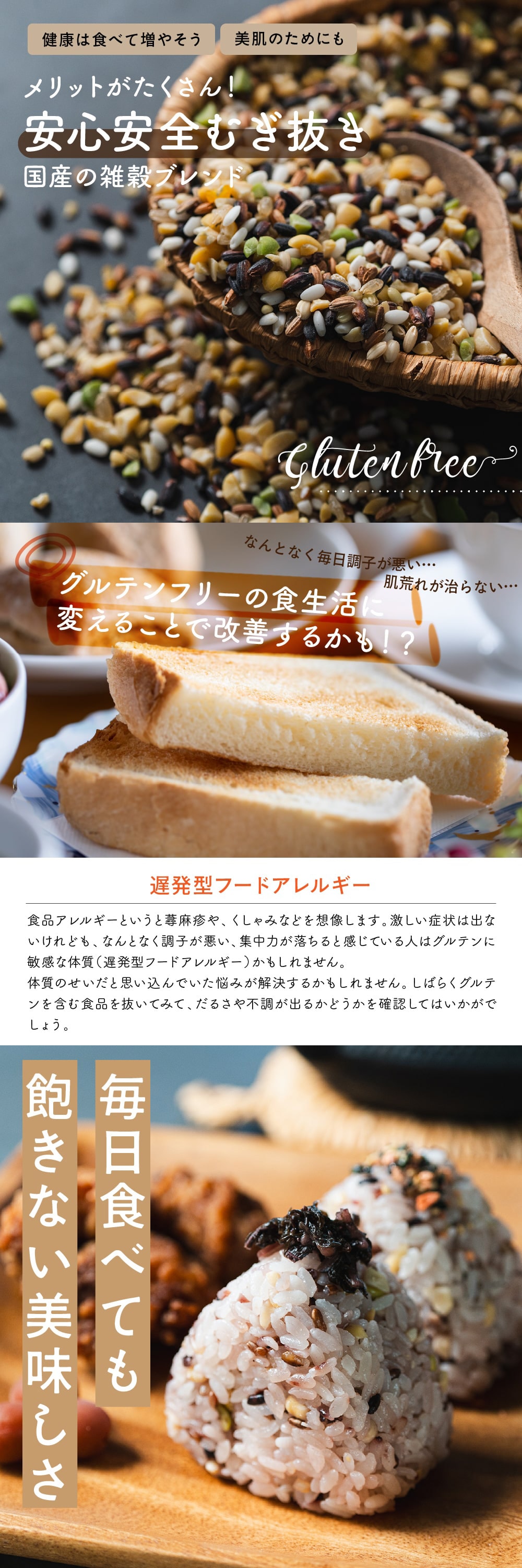 小麦アレルギーの方や、グルテンフリー生活をしている方も安心して食べられるように麦類の穀物を全て除いた雑穀米が完成。