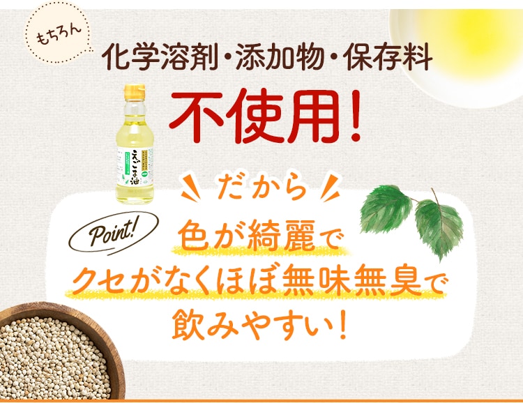 ・本品は熱に弱く酸化しやすい特性を持っています。加熱などでの使用は避けてください。