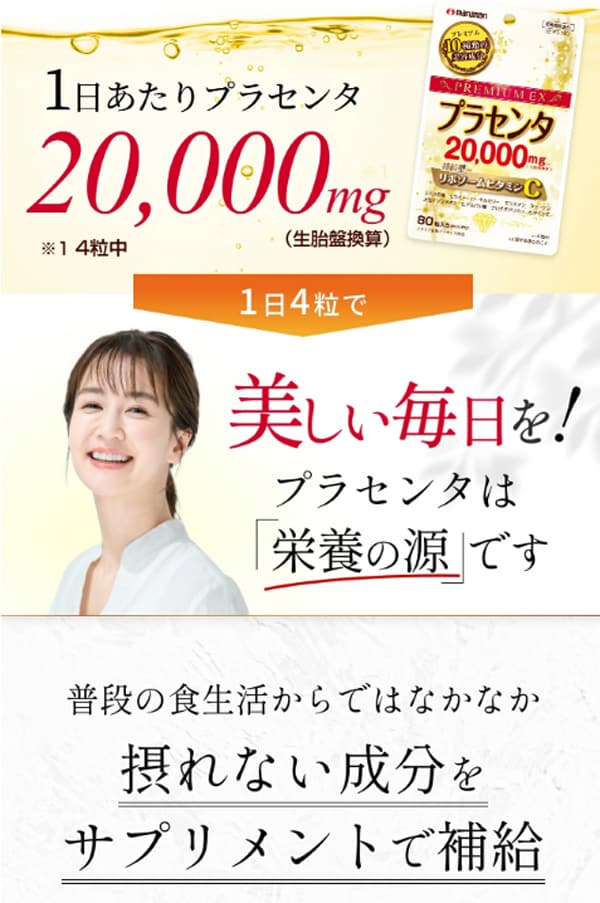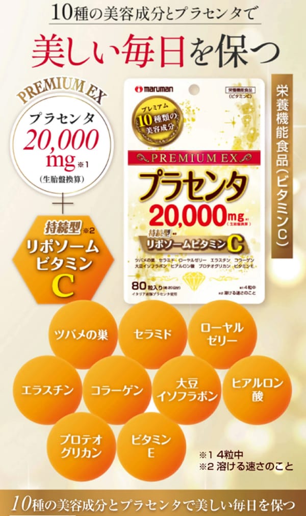 ■「プラセンタ20,000プレミアム」に、リポソーム化したビタミンCを配合したサプリメント。