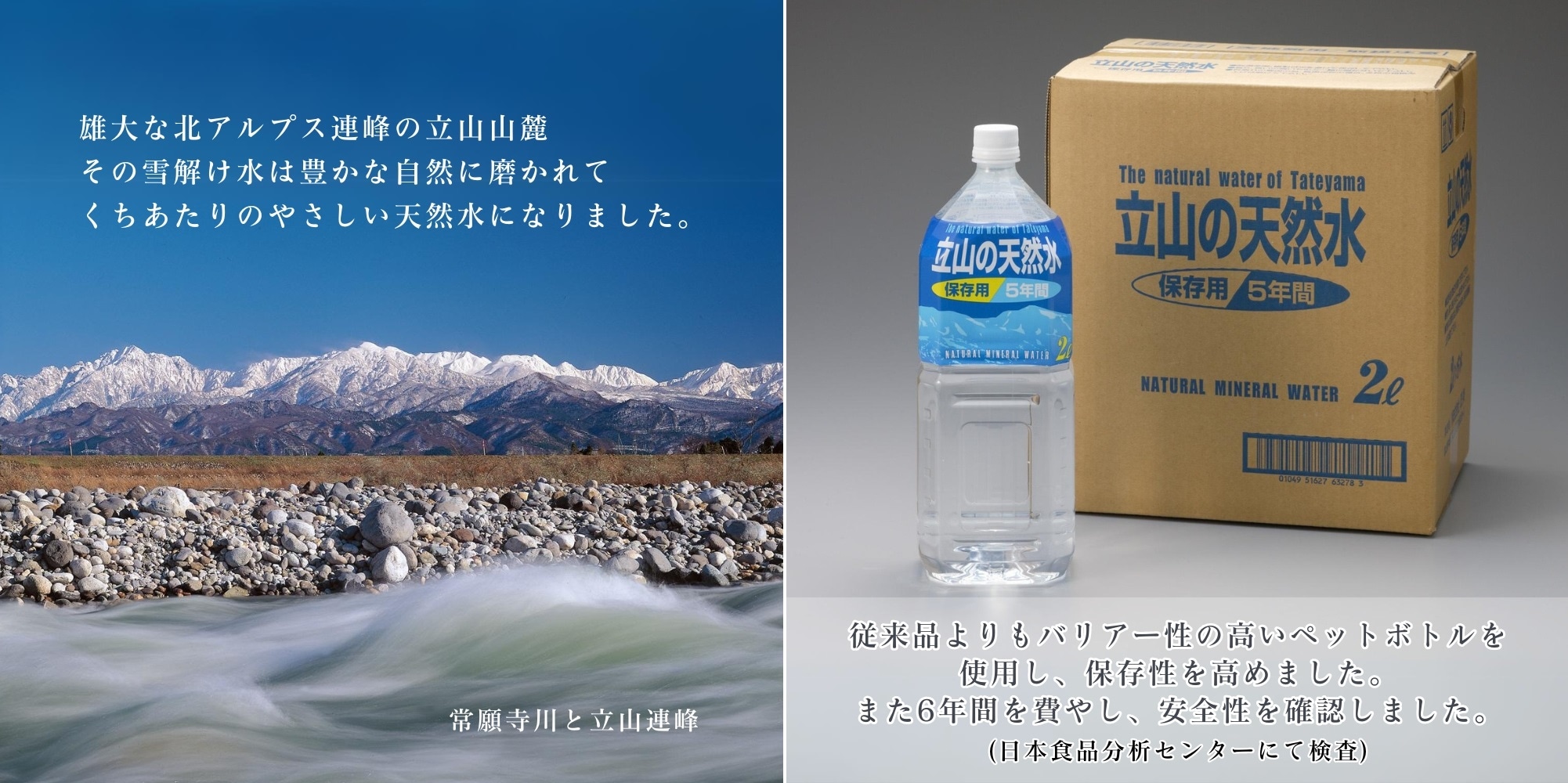 【2L×6本】立山の天然水<5年保存水>災害備蓄用の長期保存水 | 富山県北アルプス立山連峰のまろやかで口当たりのよいナチュラルミネラルウォーター。備蓄用に!