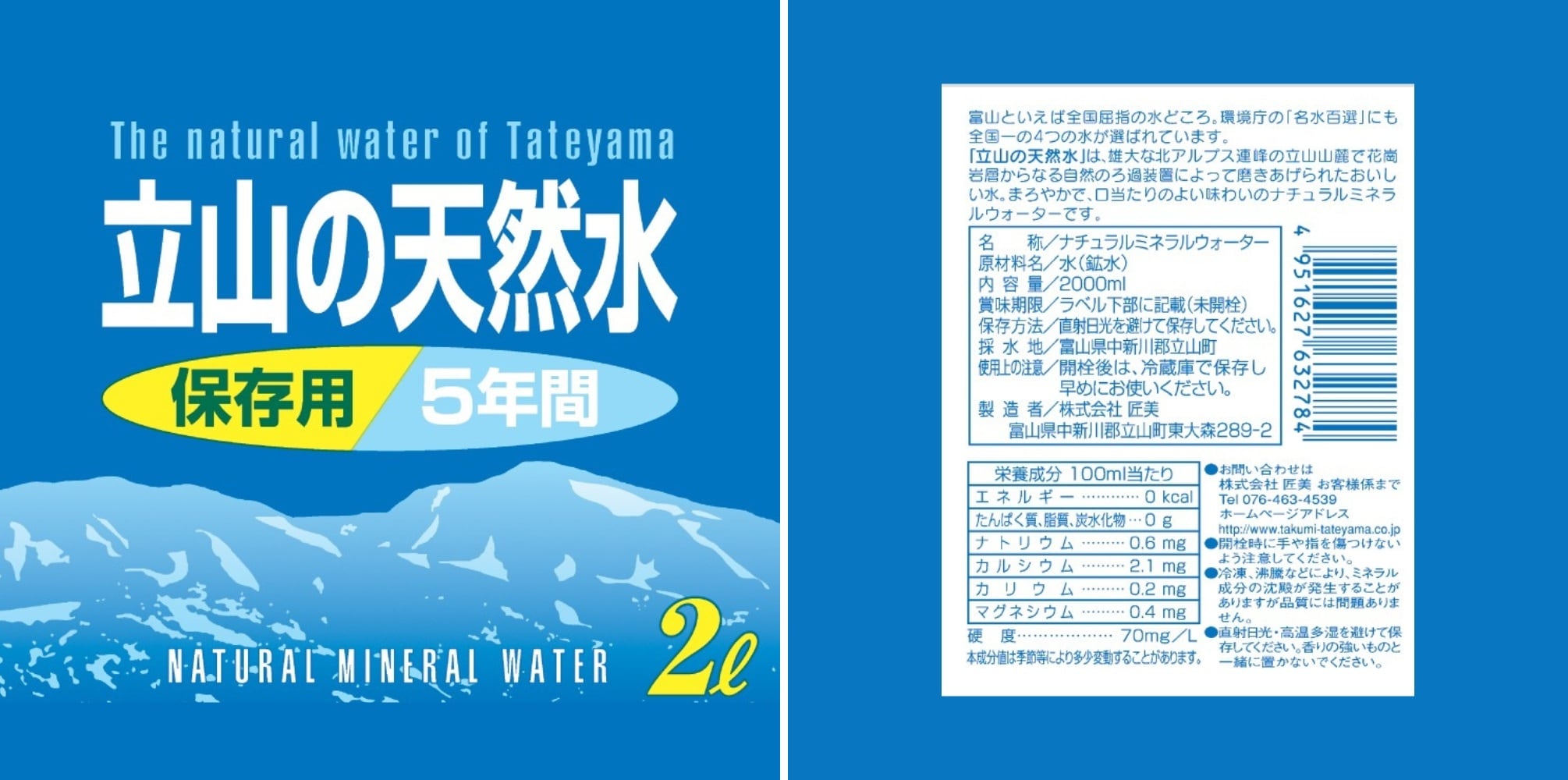 - 【2L×6本】立山の天然水<5年保存水>災害備蓄用の長期保存水