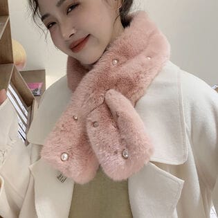 - 【A04/ピンク】ふわふわフェイクファーティペット