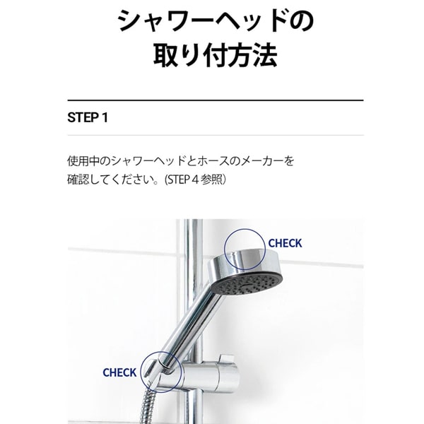 1.使用中のシャワーヘッドとホースメーカを確認してください。