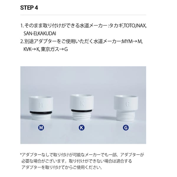 2. 適合するアフターをシャワーヘッドの方に取り付けます。