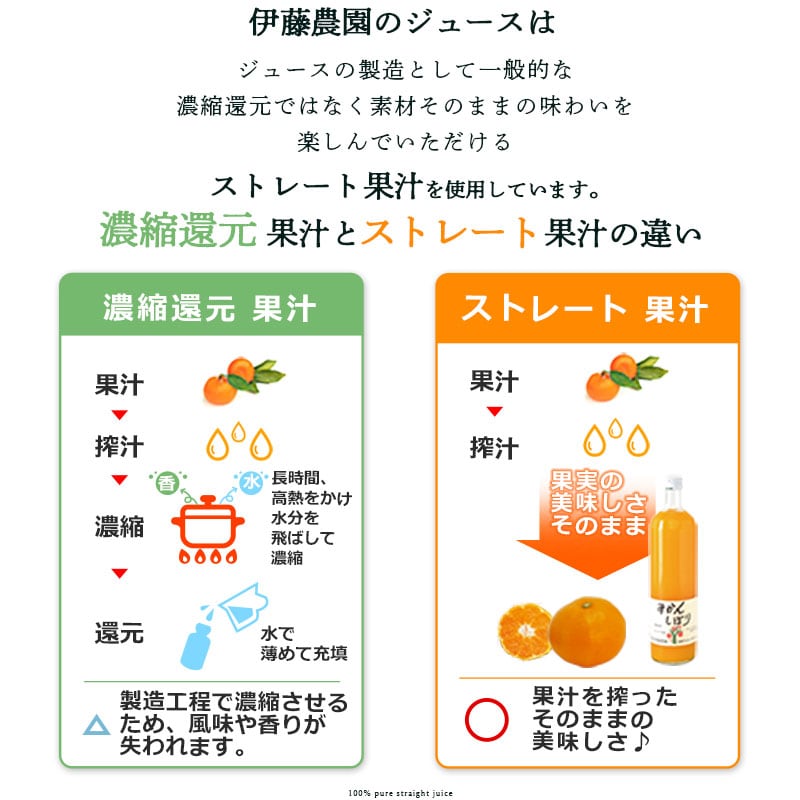 伊藤農園は果実そのまんまの味わいを届けるために、ストレートにこだわってジュースを製造しています。