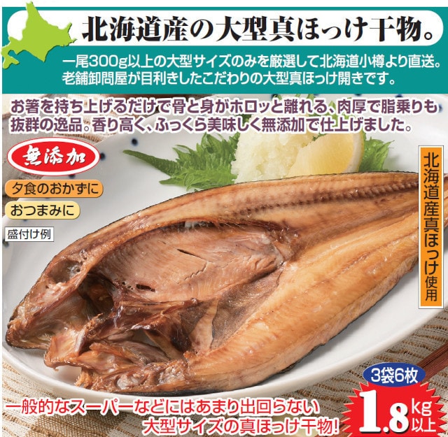 【計6枚/1袋(2枚)×3袋】北海道産大型開き真ほっけ干物
