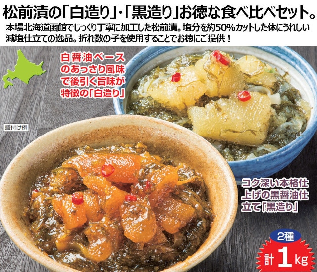 【2種計1kg】〈北海道函館製造〉減塩 松前漬けセット
