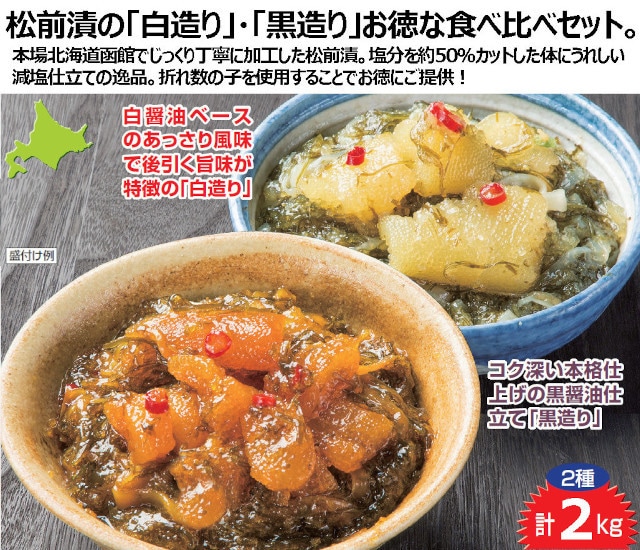 【2種計2kg】〈北海道函館製造〉減塩 松前漬けセット