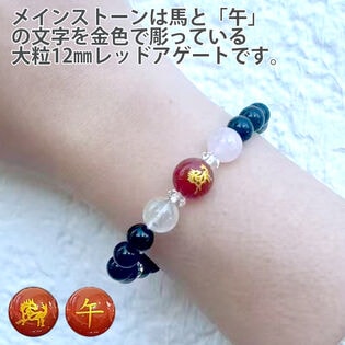 ブレスの中心には、午年の象徴である 「午(うま)」と“飛躍の馬”の刻印入りレッドアゲートを配置。