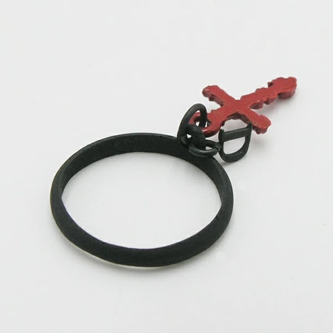 ブラック×レッドカラーの印象的なリング♪