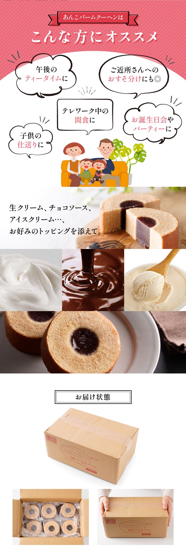 真ん中にあんこが入っているなんて、絶対おいしいと思って購入しました。中に入っているあんこが甘過ぎず、バームクーヘンとぴったりでとてもおいしかったです!何個も食べられます。