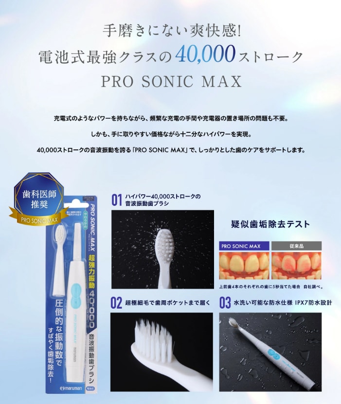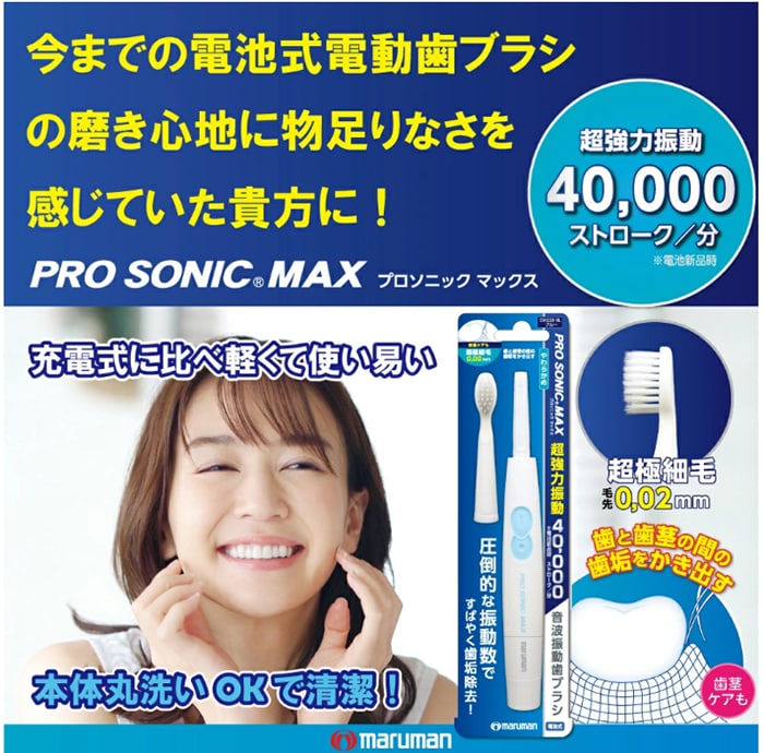 【日替わり数量限定】【3本セット(ブルー)】 マルマン/音波振動歯ブラシ プロソニックMAX/DH220BL | 電池式最強クラスの40,000ストローク!手磨きにない爽快感を!