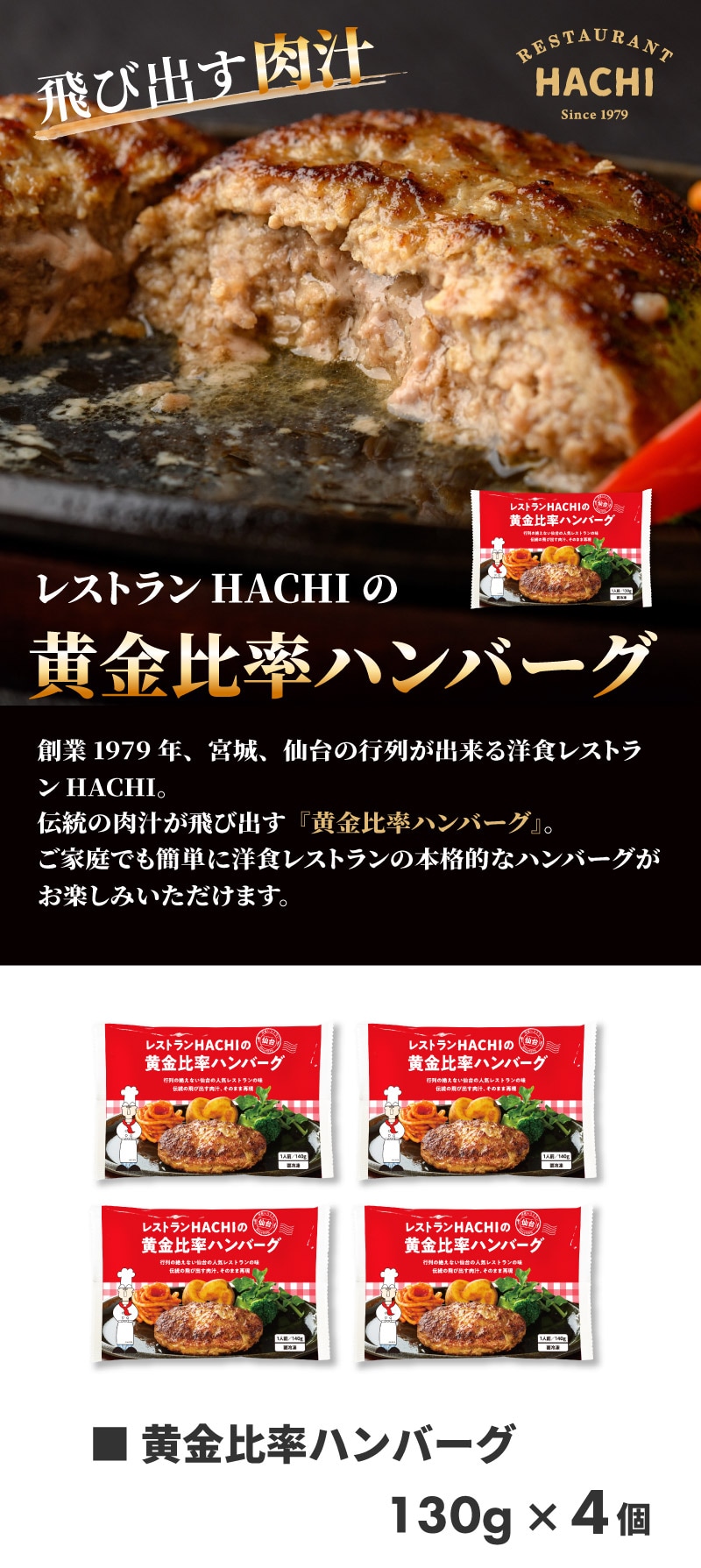 - 【宮城】130g×4個 HACHIの黄金比率ハンバーグ