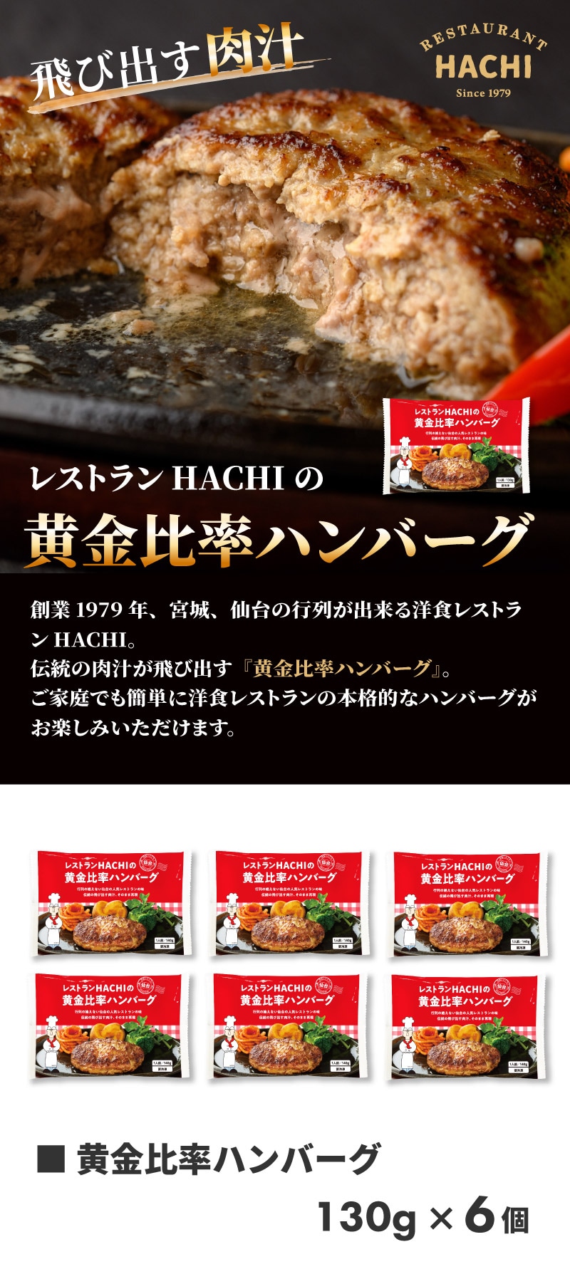 - 【宮城】130g×6個 HACHIの黄金比率ハンバーグ