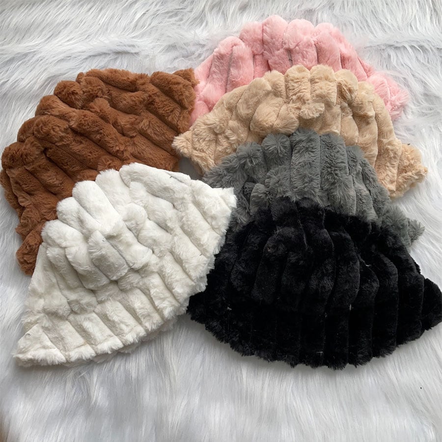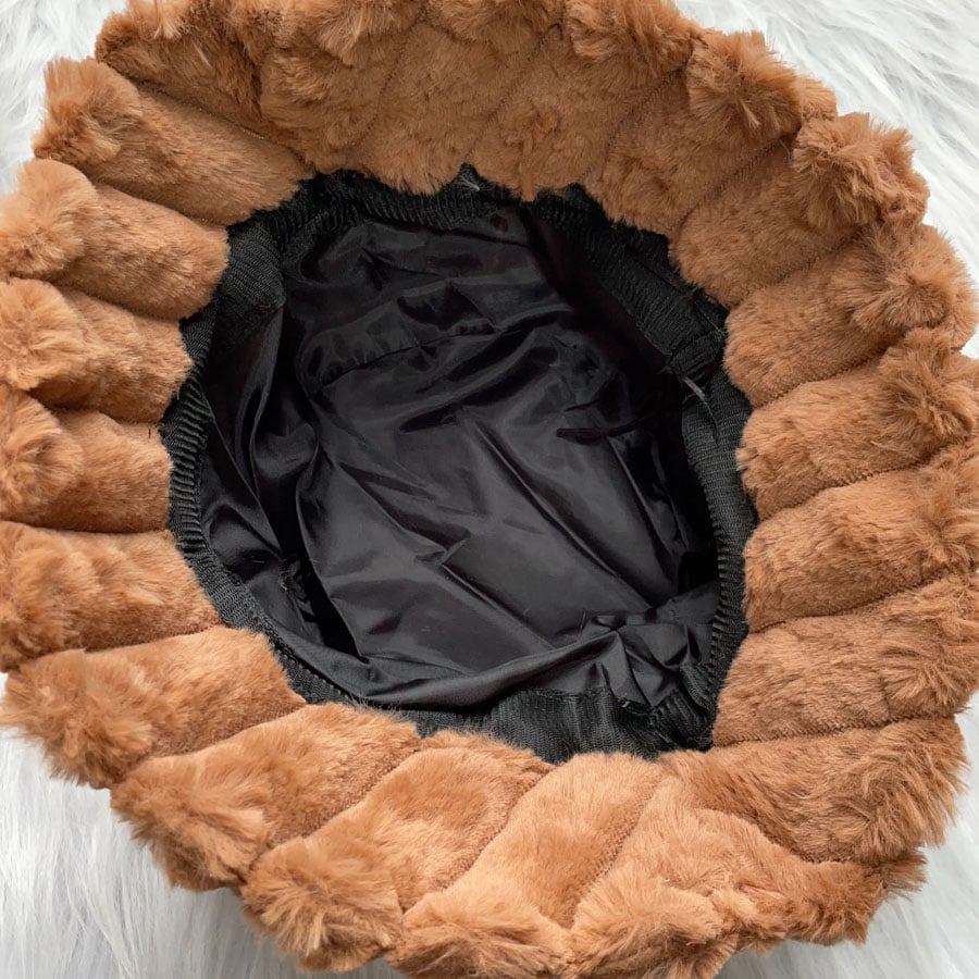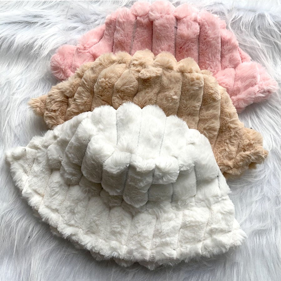 ふわふわのファーで被り心地のいいバケットハット。