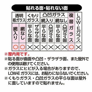 透明タイプの「網入りガラス」に貼れます。LOW-E複層ガラスに貼れます。