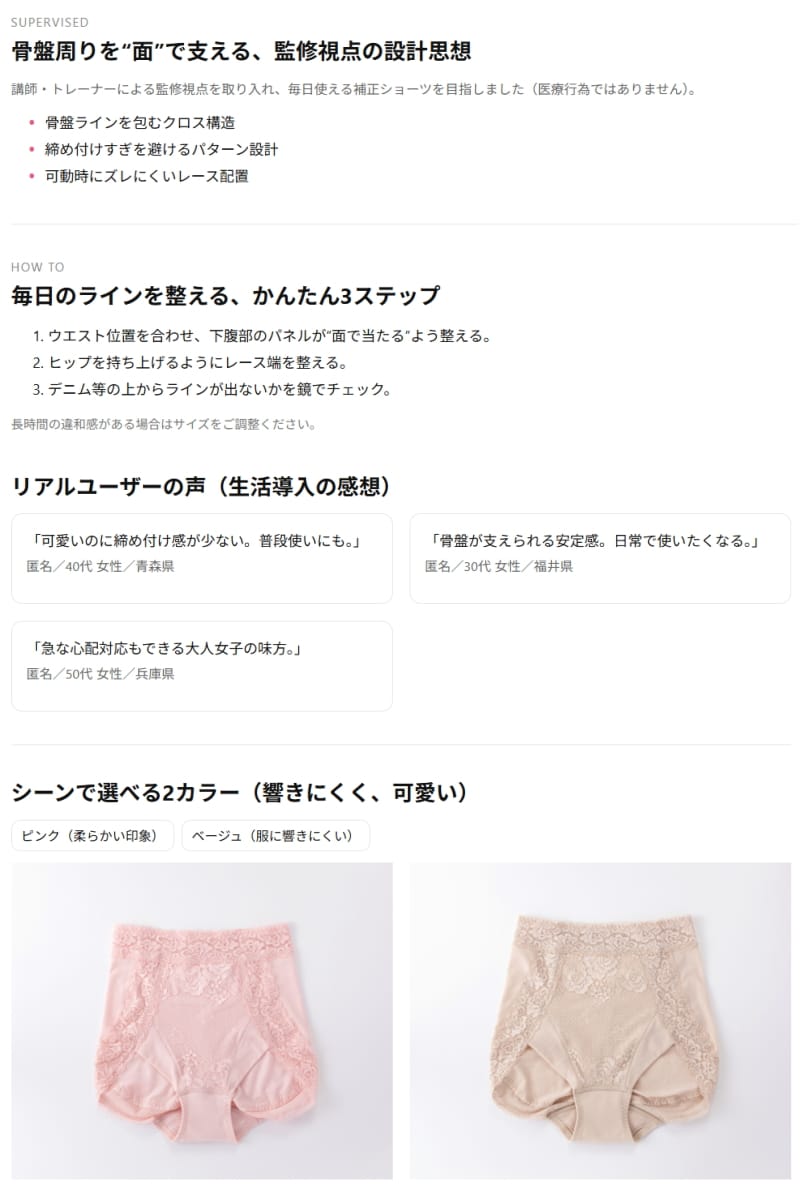 ・骨盤底筋群を支える設計で、軽失禁や経血もサポート