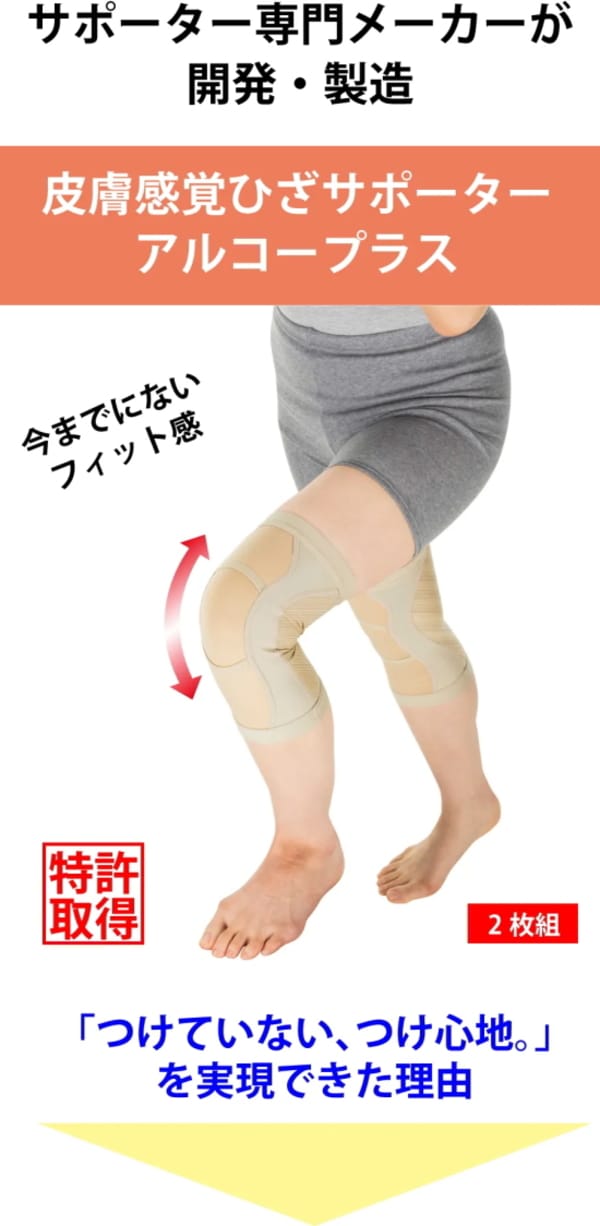 - 【ベージュ/Lサイズ/2枚組】皮膚感覚ひざサポーターaruko