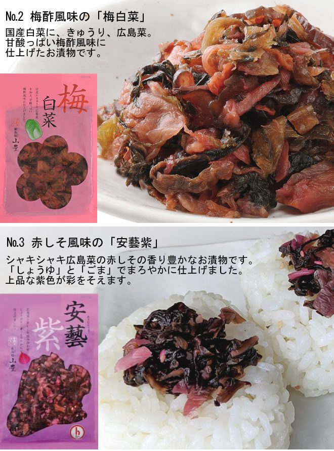 - 【日替わり数量限定】【3種/計3袋】「ぱりぱり広島菜」「安藝紫」「梅白菜」3種各1袋セット!漬物グランプリ金賞受賞☆【先行チケット利用NG】
