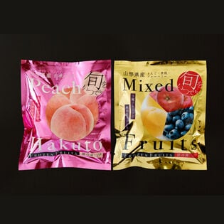 ・原材料/材質/素材:【白桃】白桃(山形県産)、水飴加工品、【ミックスフルーツ】りんご(山形県産)、黄桃(山形県産)、ブルーベリー(山形県産)