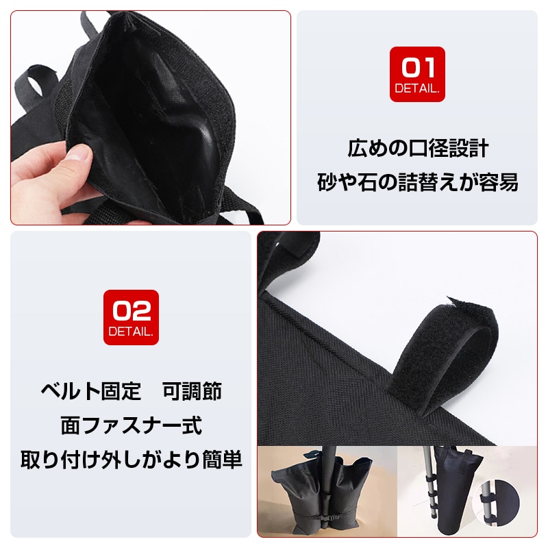 ペグが使えないアスファルトや砂浜の強風対策、転倒防止に最適です。