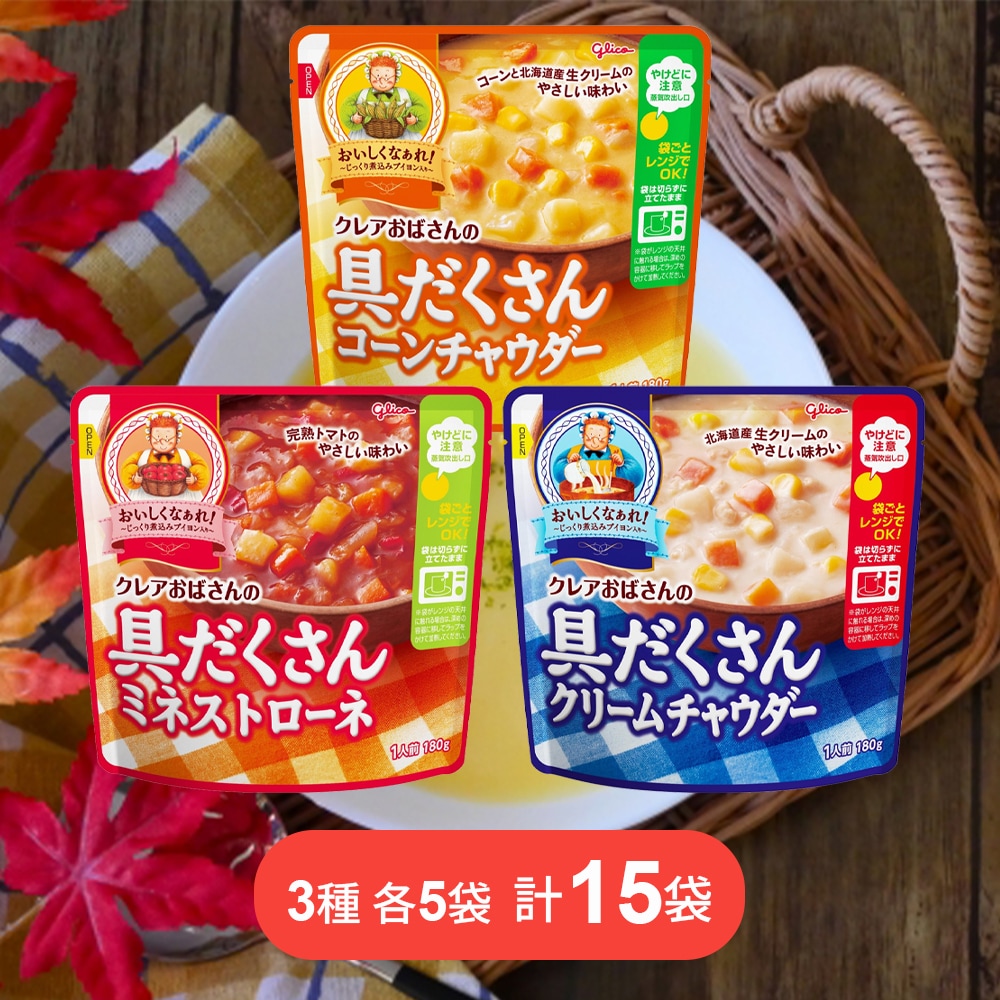 - 【計15袋/3種×5袋ずつ】江崎グリコ クレアおばさんの具だくさんスープ3種アソート