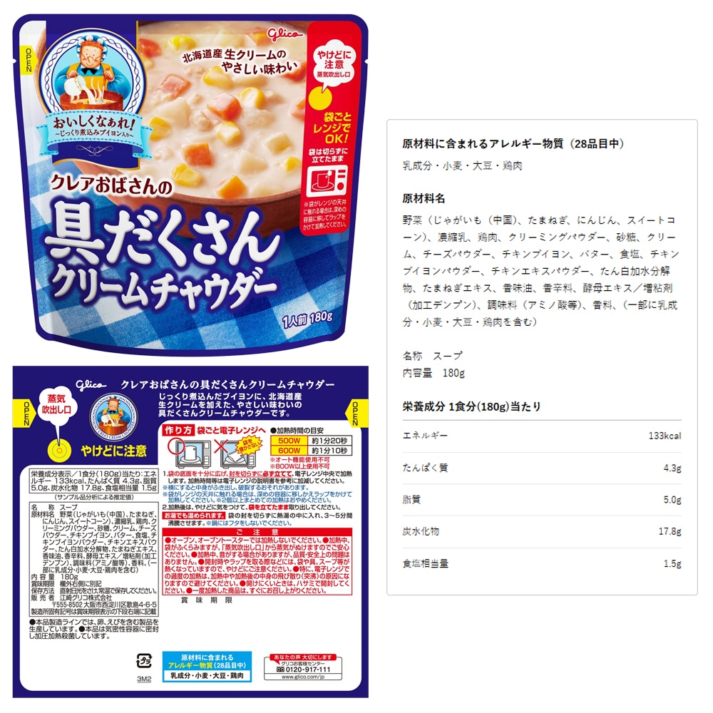 江崎グリコの「クレアおばさんの具だくさんスープ」は、家庭で手軽に“ほっとするおいしさ”を楽しめるスープです。