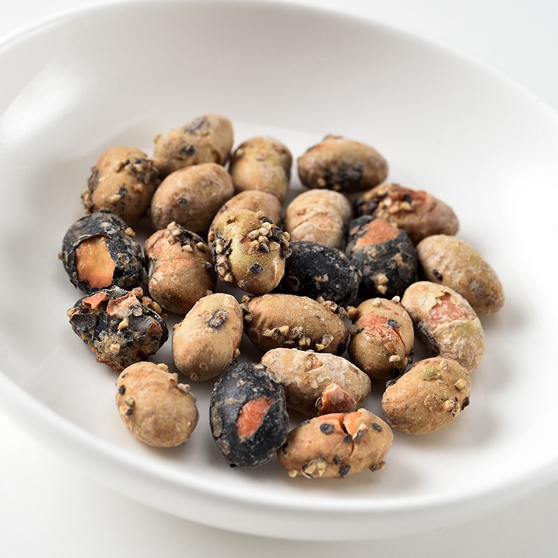 大豆の甘みとスパイシーな黒胡椒の辛さがあと引くおいしさです。ミニサイズ商品は黒大豆も入っていて、二度お楽しみいただけます。