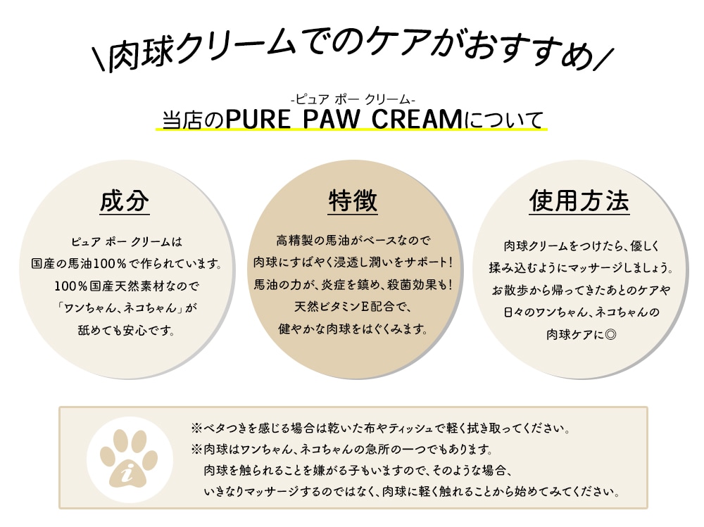 少量を指先につけて、肉球部分に優しく円を描くように塗り込んでください。
