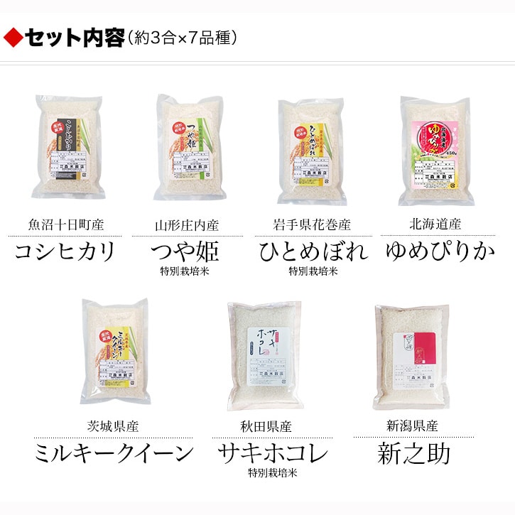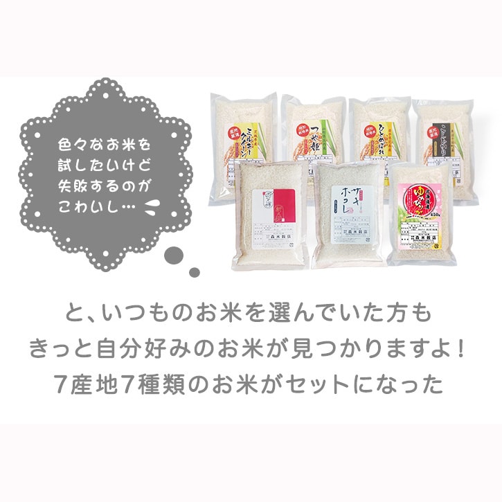 こめ問屋の店長が厳選した7産地7品種のお米をセットにしました!!