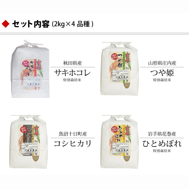 - 【8kg(2kg×4袋)】令和7年産 玄米ぜいたく!食べ比べセット!2026