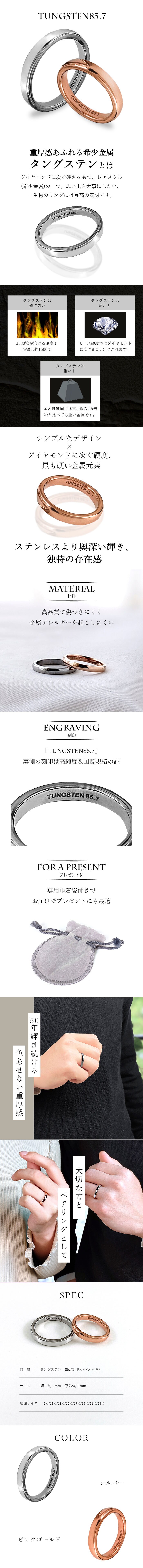 ★希少金属「タングステン」をシンプルなデザインで仕上げたペアリング!