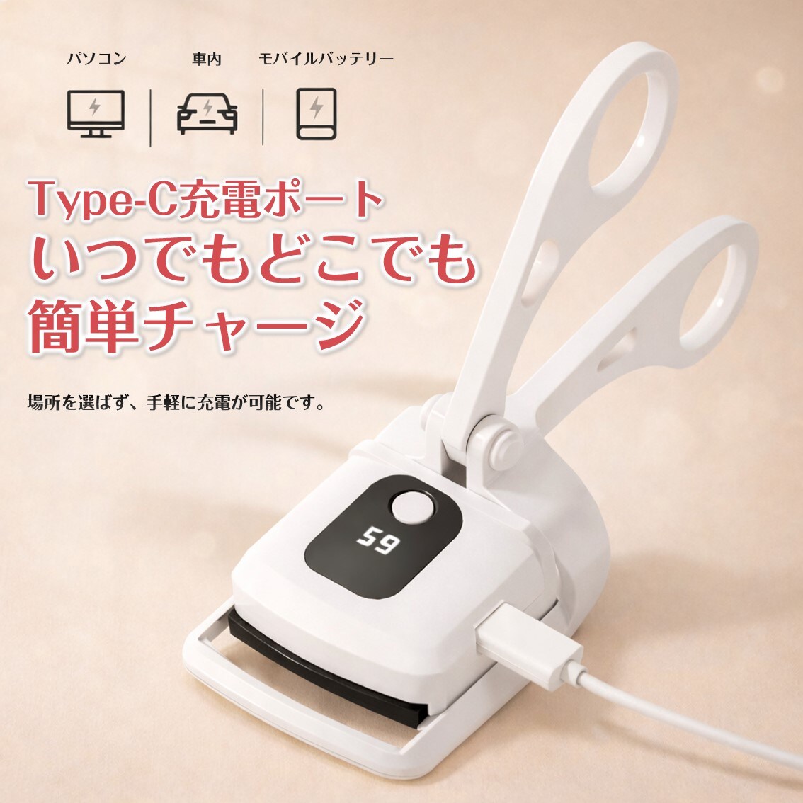 - 【ピンク】充電式ホットビューラー 挟むタイプ
