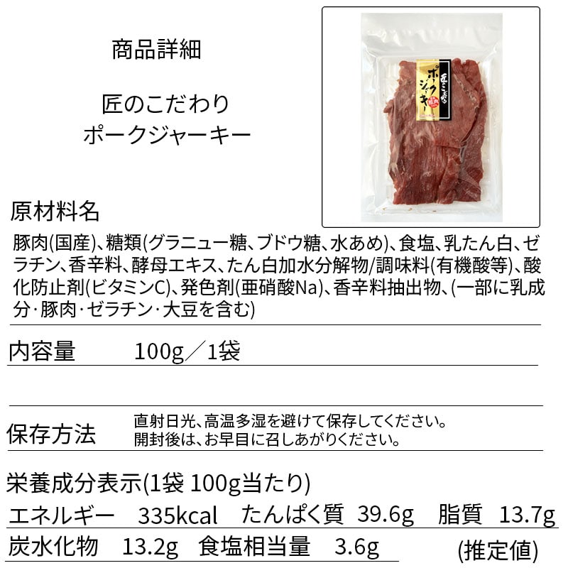 - 【100g×10袋】匠のこだわり ポークジャーキー1kg