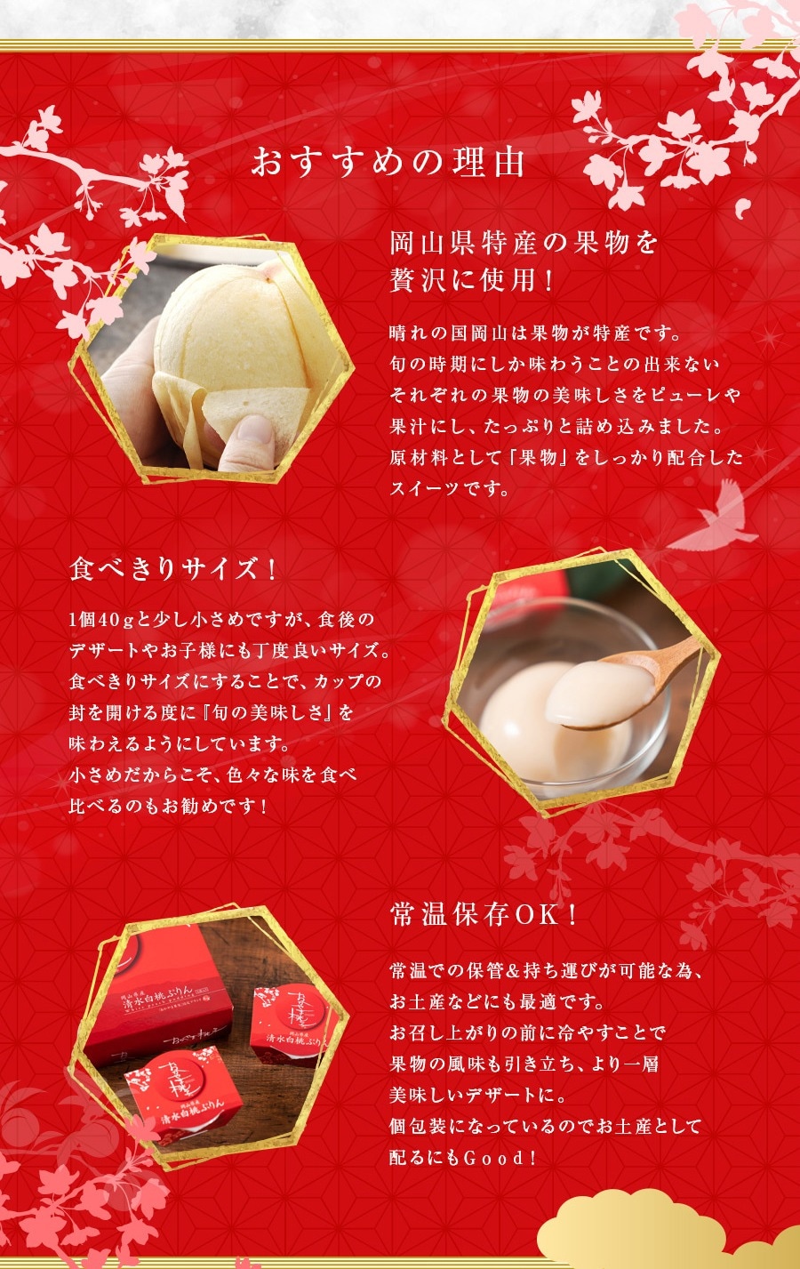 農家の人たちが大切に育んだ岡山県産の清水白桃を使用したプリンです。個数分のスプーンが付いています。