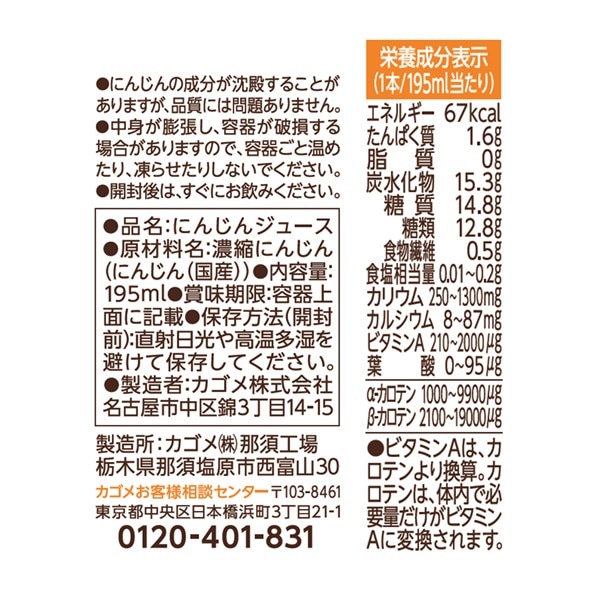 - カゴメ にんじんジュースプレミアム 195ml×24本