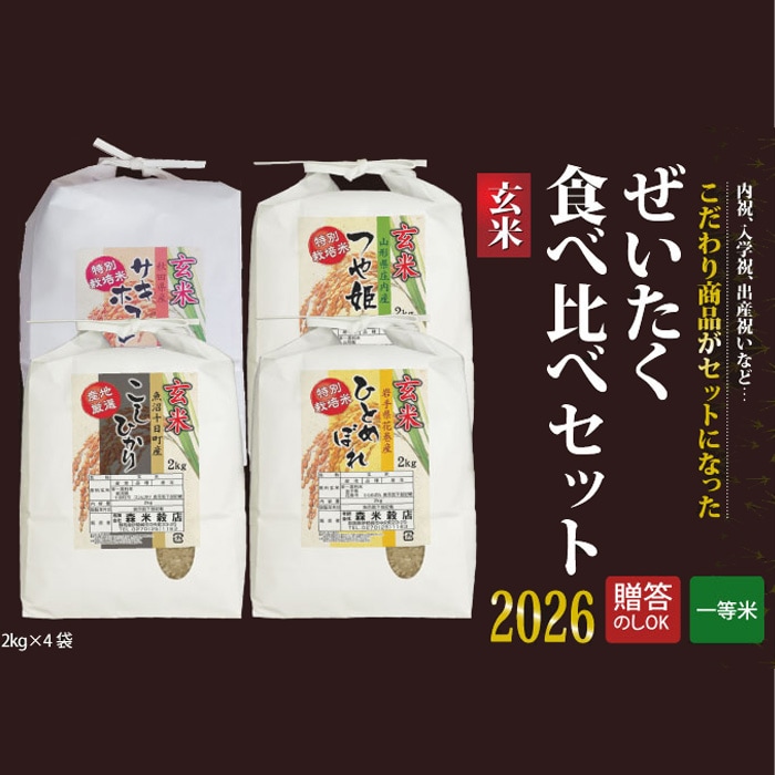 - 【8kg(2kg×4袋)】令和7年産 玄米ぜいたく!食べ比べセット!2026