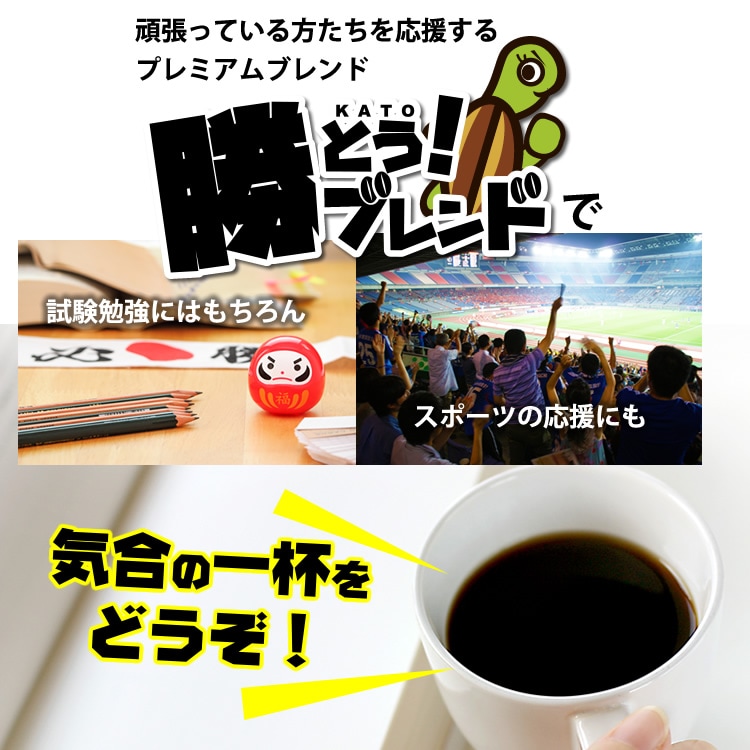 【計2kg(500g×2種計4袋】[加藤珈琲店]勝とうコーヒー飲み比べセット<挽き具合:中挽き> | 頑張っている方たちを応援するプレミアムブレンドコーヒー! 「勝とうブレンド」で気合の一杯!