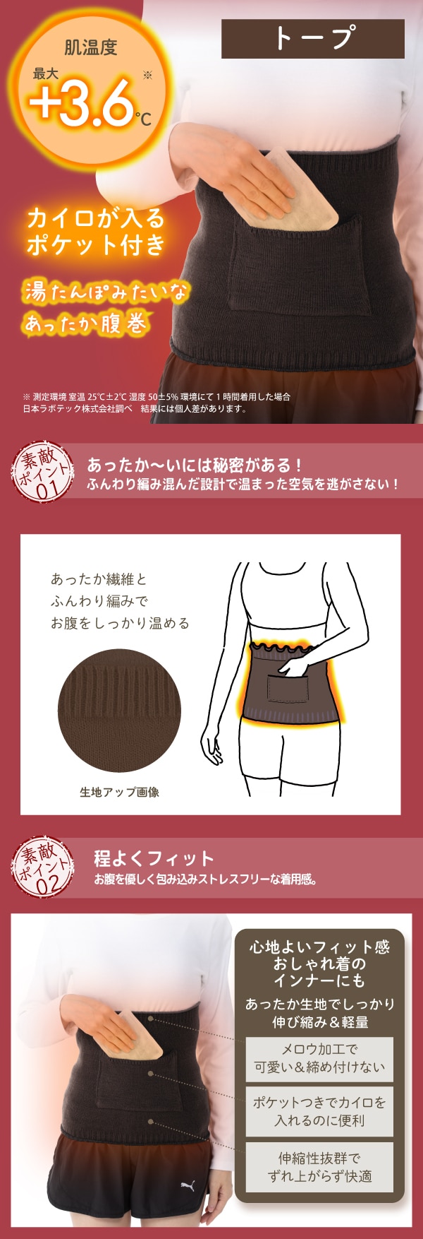 - 【トープ】湯たんぽみたいなあったかポケット付き腹巻