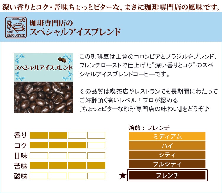 【計1.5kg(500g×3袋)】[加藤珈琲店]スペシャルアイスブレンド<挽き具合:極細挽き> | 業務用プロ仕様の珈琲豆。市販品とは一味違うアイスコーヒーをご家庭で!