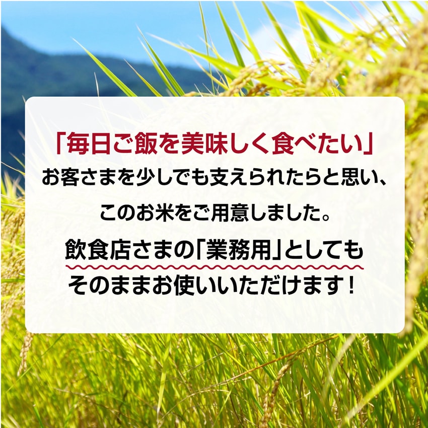 ふっくらと炊き上がり、噛むほどに広がるやさしい甘み。毎日の食卓にちょうどいい、飽きのこない美味しさです。「美味しさ」と「お手頃感」を大切にした、業務用でもそのままお使いいただけます。