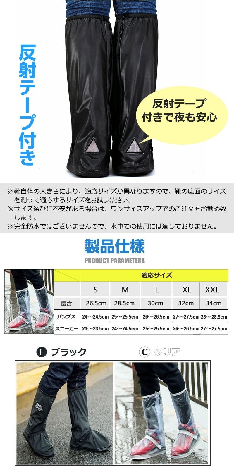 シューズレインカバー 大人 子供 通学 通勤 メンズ レディース アウトドア レジャー 滑り止め 防災 男女兼用 靴カバー ロング レインブーツ ブーツカバー くつ雨具 防水シューズカバー 雨対策 豪雨対策 梅雨対策 レインカバー お手入れ簡単 自転車 登山 軽量 携帯便利