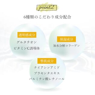 *話題の美容成分 「白玉グルタチオン」 に加え、ビタミンC誘導体・ナイアシンアミド・コラーゲンを配合。