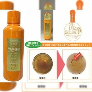・原材料/材質/素材:水、グリセリン(湿潤剤)、PEG-60水添ヒマシ油(可溶化剤)、プロポリスエキス・チャ葉エキス・キシリトール・メントール・サッカリンNa(香味剤)、クエン酸・クエン酸Na・リンゴ酸(pH調整剤)、カラメル(着色剤)、安息香酸Na(保存剤)、香料